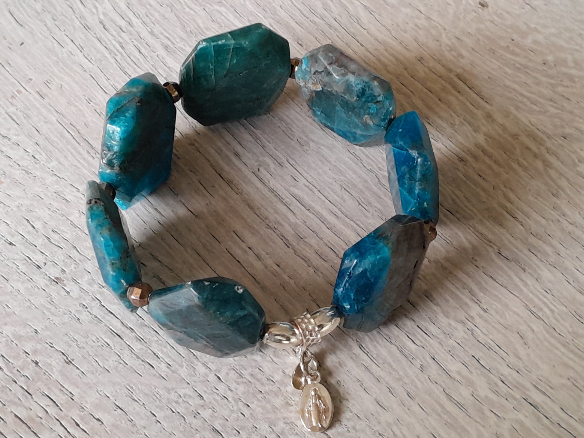 Striking and super beautifuL bracelet with large Apatite stones and 925 silver.