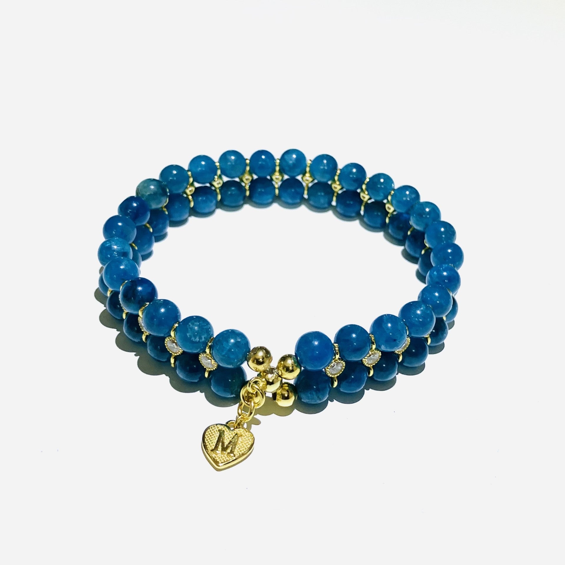 Double Apatite bracelet with 6mm stones, 925 sterling silver-14Kt gold plated with zirconia.