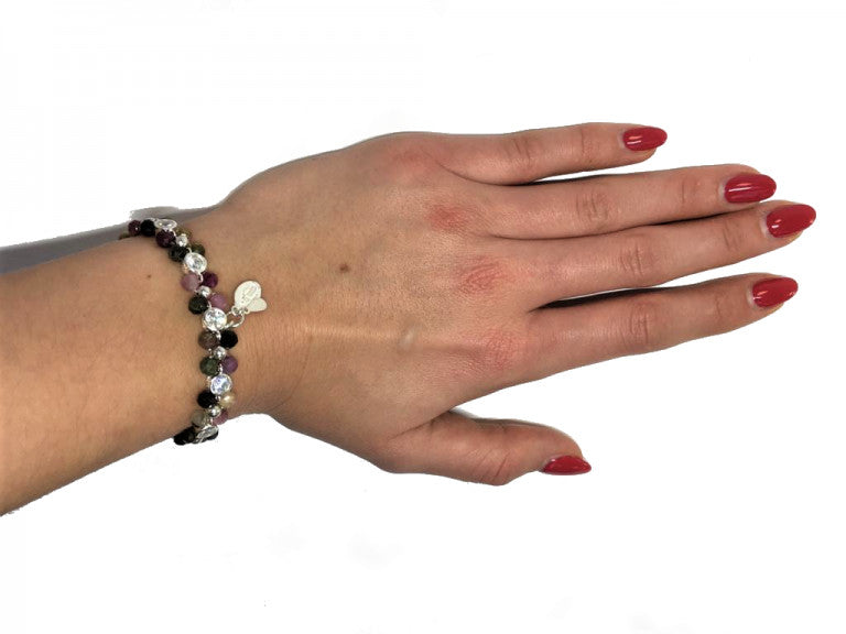 The bracelet has a chic sporty look due to its color and is a beautiful piece of jewelry. The design is reminiscent of a 925 silver tennis bracelet enriched with beautiful Tourmaline gemstones. Strung with durable 1mm thick elastic especially intented for long lasting luxurious jewelry.