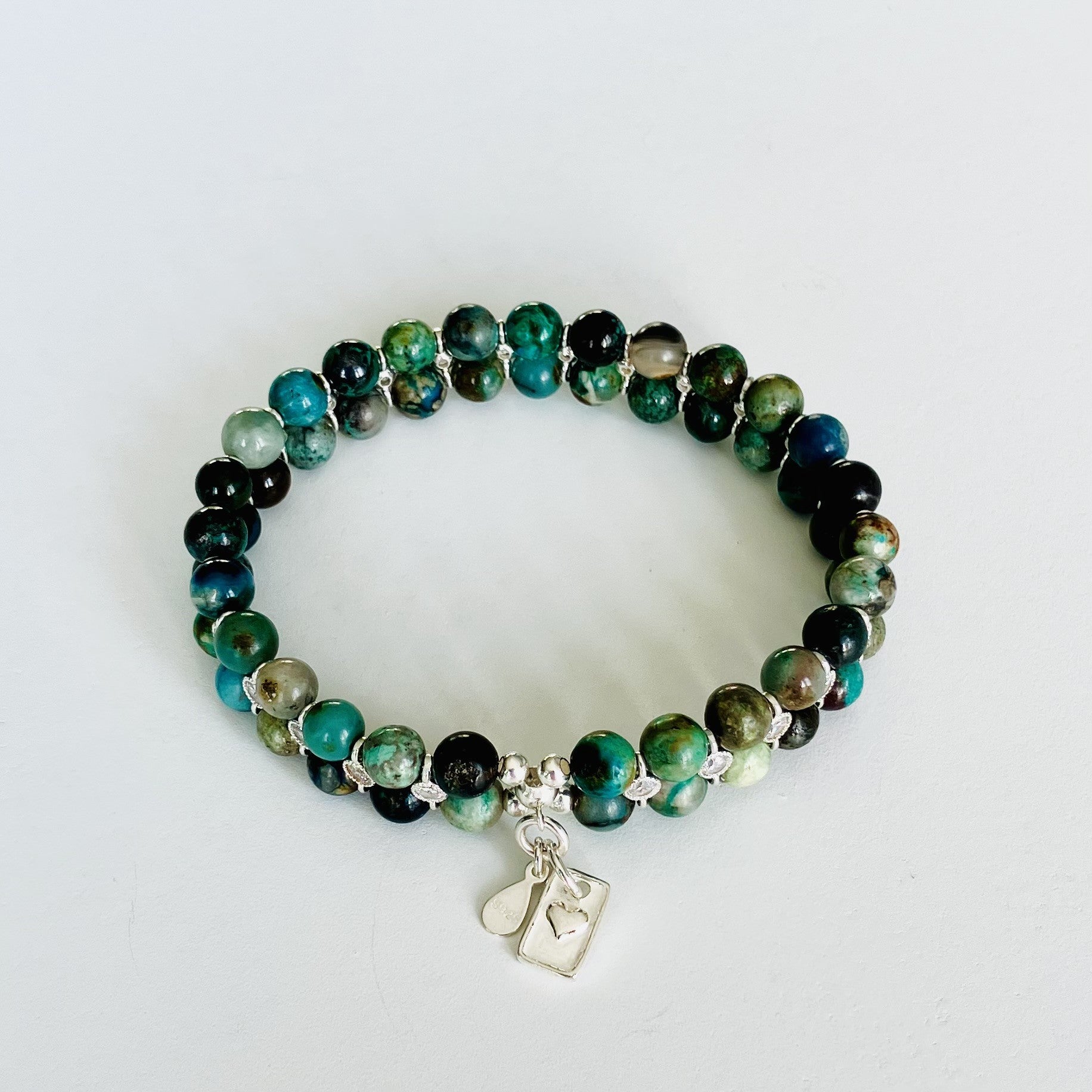 Beautiful ladies bracelet of beautiful Turquoise beads from South-Africa with 925 sterling silver zirkon connectors. The color of the stones are really beautiful and unique, you rarely come across such a nice palet of colors that resemble earth, vegatation and water. They are just beautiful stones. The silver spacers are set with Zirconia and do not only make the Turquoise stand out better, they also strengthen each other's effect, whereby silver has an anti-bacterial effect.