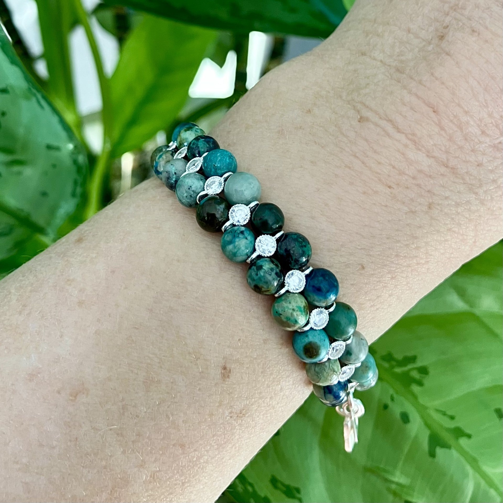 Turquoise Bracelet 5mm double with zirconia and 925 silver (16-17cm)